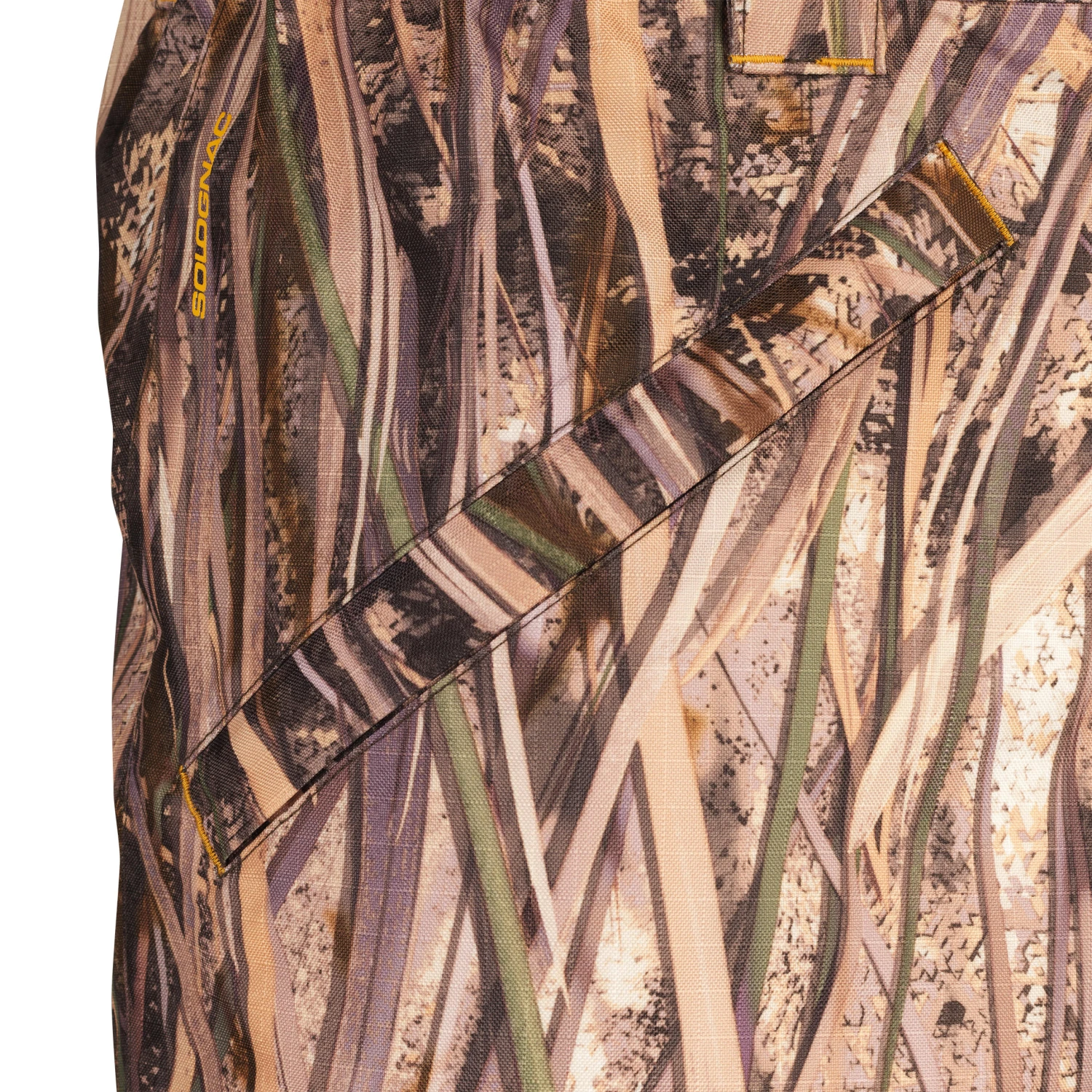These hunting trousers have the exclusive SOLOGNAC wetlands camouflage pattern, designed for better camouflage in the eyes of waterfowl such as geese, ducks and teals. With its pattern of vegetation (rushes, grass, reeds), a 3D effect, a realistic foreground and a high-contrast background with light and dark shades, these trousers allow you blend into any kind of vegetation at dusk or any time of day.