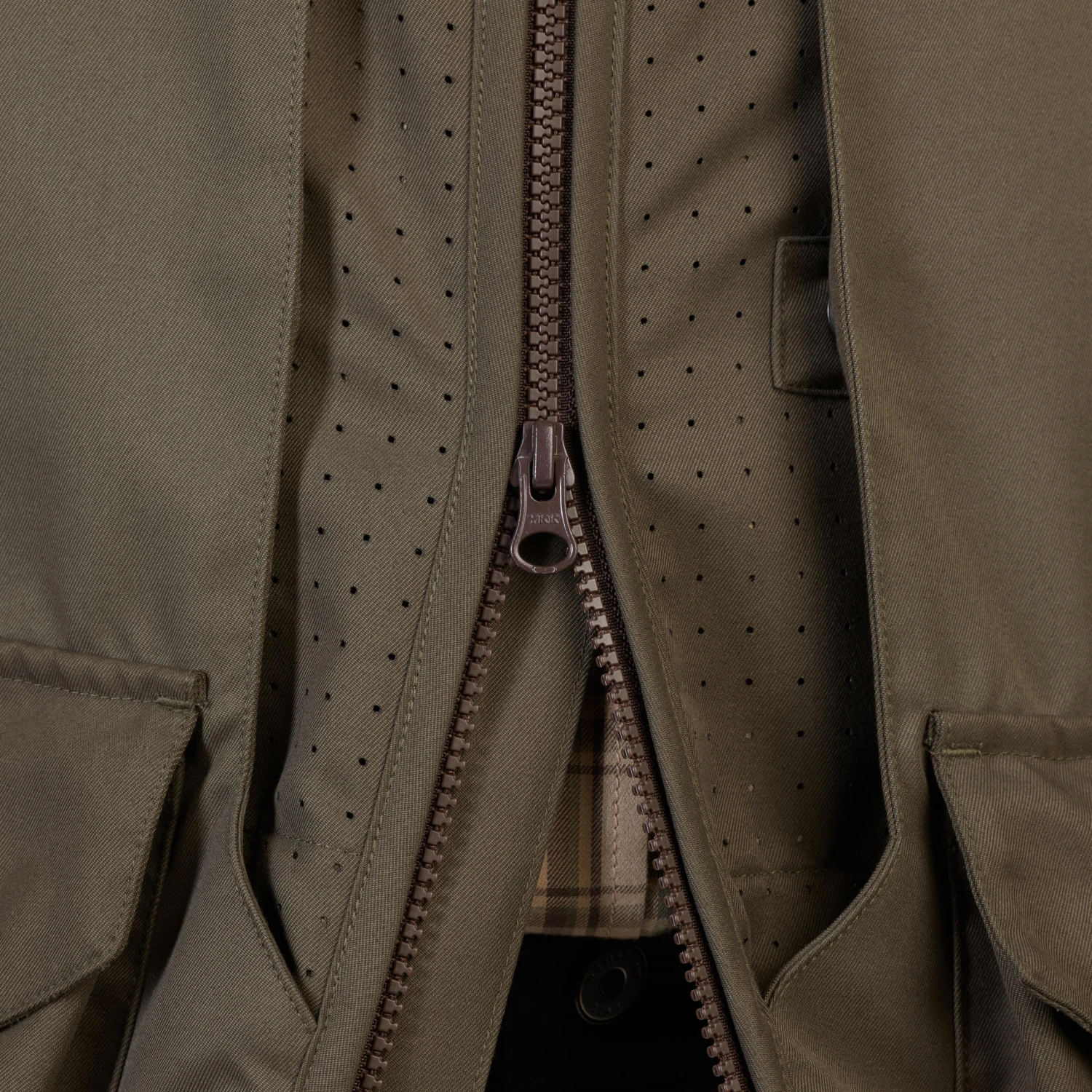 From a very early stage in the development process, we wanted it to be possible to quickly, easily and intuitively turn this jacket into a vest. This is because, during intense hunts in lowland or scrubland environments, you can get hot quickly (even in cooler weather). So we developed technical solutions to address these usage constraints: a zip to enable the sleeves to be removed emerged as the most appropriate solution.